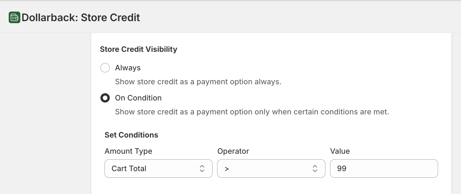 Outcome: Merchant wants to disable store credit as an option if the customer has applied a discount code at checkout. This helps them protect margins.