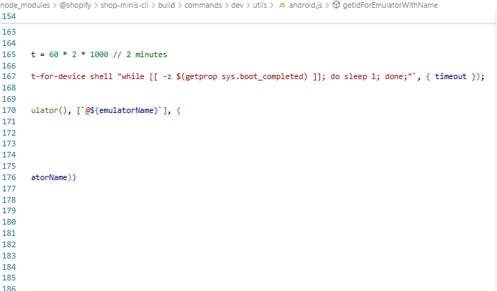 I am facing an issue when trying to run the shop mini app in an Android emulator. I get the below error in Terminal and it continously tries to open the Emulator even when it’s already open, I also installed the Shop Pay app on the android emulator device and tried to open the app but the app automatically gets closed after a few seconds.