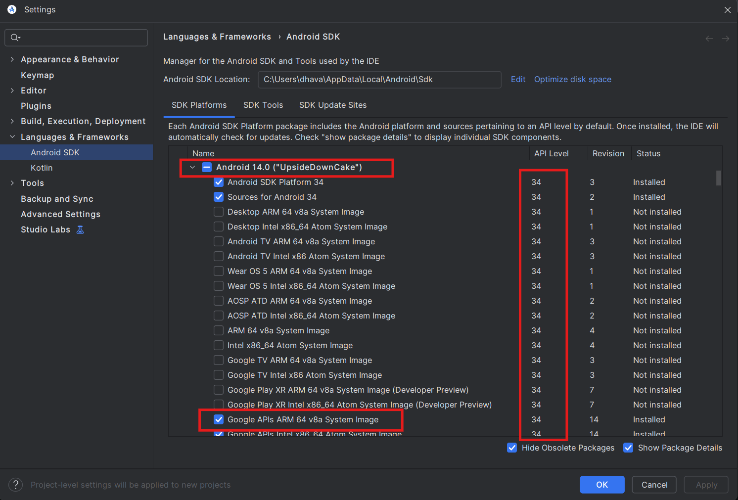 Hey @Quique-Shopify I downloaded the Google APIs ARM 64 architecture, and tried to create a new Virtual Device using API 34, but there I could not find the “Google APIs ARM 64“ that I had downloaded, so I checked the “Show unsupported system images“ checkbox and then I was able to see the “Google APIs ARM 64“ architecture (although I see a small warning icon next to the architecture). I finish setting up the device and try to run the “npx shop-minis dev“ cmd and now the emulator fails to open, please check the attached screenshot of the error.