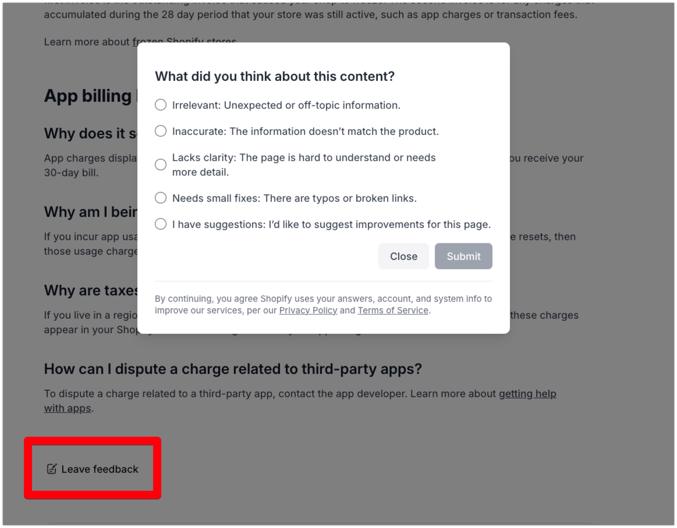 I understand that merchants will always have questions and concerns about this sort of situation, but here’s the kicker: In almost every case I’ve dealt with, the merchant has or does reach out to Shopify support who proceeds to blame us (the app developers) and claim that we did something that’s literally not even possible with the Billing API. In the most recent case, they said “app developers switch from post paid to pre paid billing”, which isn’t even something that exists in Shopify app billing, but I’ve also seen things like “the app developer may have issued an extra charge”, which isn’t possible unless the merchant accepts a new charge, and obviously isn’t the case since the billing periods for each charge can be clearly seen by everyone.