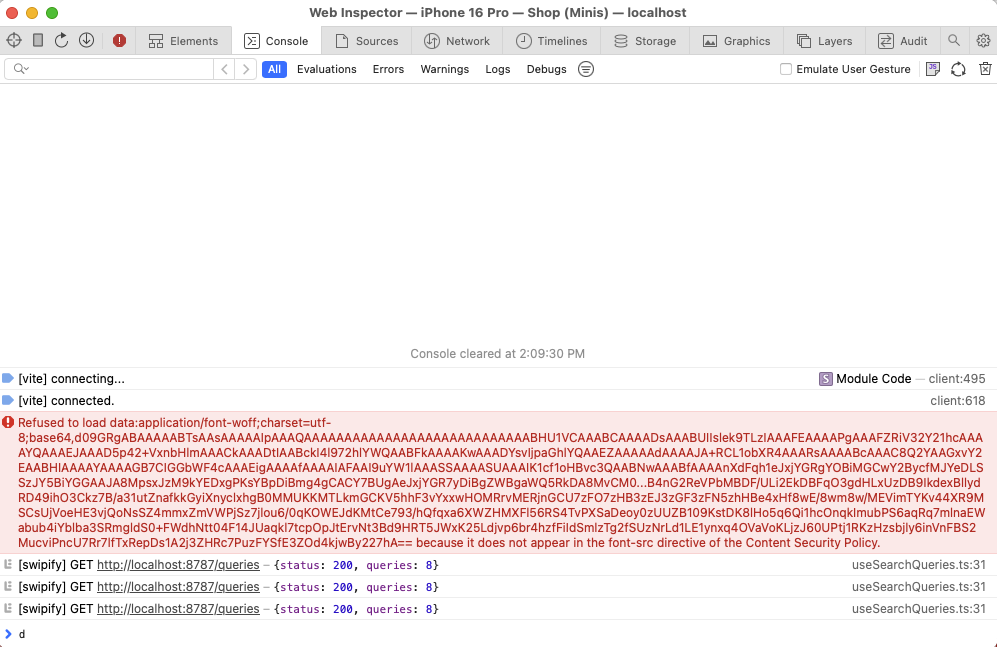 Getting the following font error in Safari inspector in both the simulator and physical device: