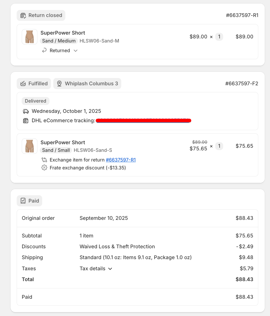 I think this is confusing because the customer may think that they paid $151.30 and be concerned that they were overcharged. I think ideally this price breakdown would include “returns”, and instead of “Order Total” (or in addition to it) we show “Paid”, so be extra clear to the customer what they paid (which is $88.43 in this case, not $169.38).