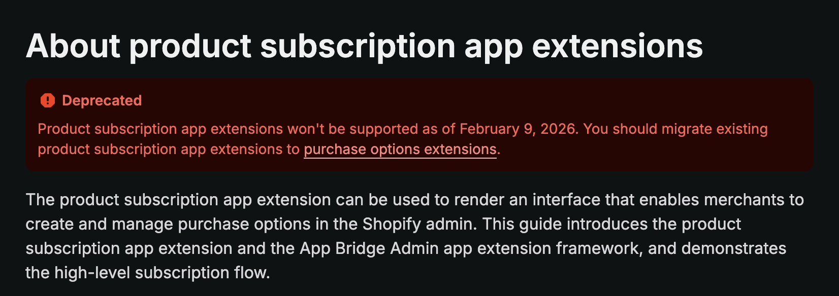 Hi, I have created a purchase options extension according to the Shopify documentation - Start building purchase options extensions , since the current subscription app extension will no longer be supported as of February 9, 2026. About product subscription app extensions