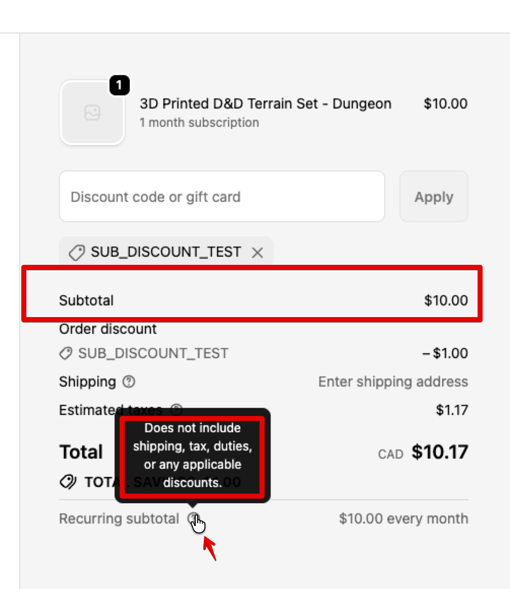 Regarding the tool tip, it’s very unrealistic to expect a customer to reverse engineer that. It’s literally worthless for this specific issue. For example, not a single customer is going to think “There’s a Shopify subscription and bundles app that gives discounts, and the recurring subtotal being displayed is what would be shown if these Shopify apps were giving no discounts.” Customers don’t know anything about a Shopify store’s internals
