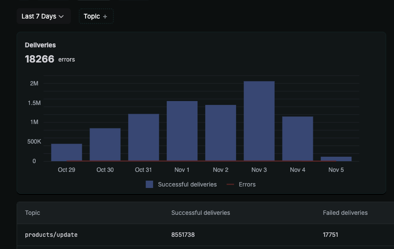 Many stores are spamming webhook requests to my app. Normally, the total number of requests is around 2 million per week, but recently it has increased to about 8–9 million per week (even after disabling several dozen stores yesterday).