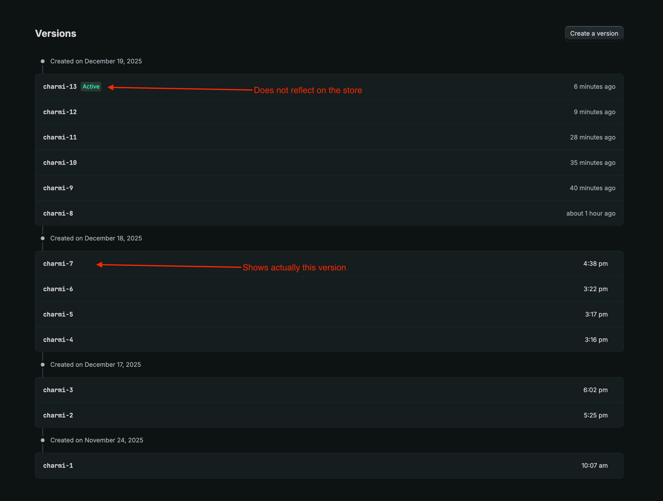 I am trying to deploy a new version of a theme extension using `npx shopify app deploy`, however the released / active version isn’t reflected in the store. The store shows yesterday’s released version.